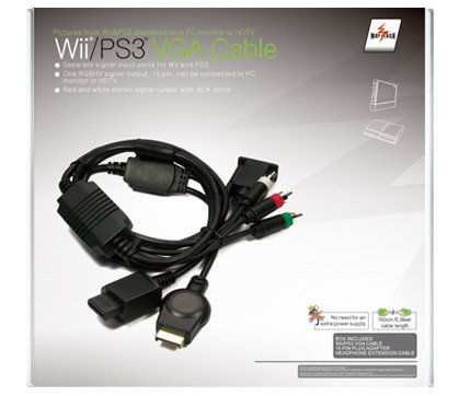 Experience mind blowing, high-definition brilliance gameplay with the High Definintiion VGA Cable for PS3 and Nintendo Wii. Designed for HDTVs, LCD TVs, projectors as well as PC monitors, you can now play your PS3 at 480p, 720p, 1080i, or 1080p high resolution, or you can play your Nintendo Wii at 480p resolution. Don't settle for your standard component cable when you get the best output quality for your PS3 or Nintendo Wii with the High Definition VGA Cable for PS3 and Nintendo Wii.Customer Reviews